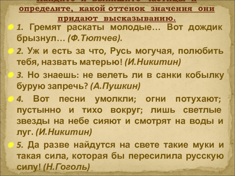 Найдите и выпишите частицы и определите, какой оттенок значения они придают высказыванию.