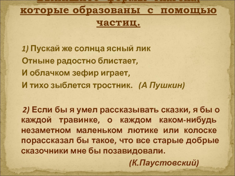 Выпишите формы глагола, которые образованы с помощью частиц.