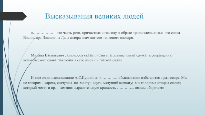 Михаил Васильевич Ломоносов сказал: «Сии глагольные имена служат к сокращению человеческого слова, заключая в себе имени и глагола силу».