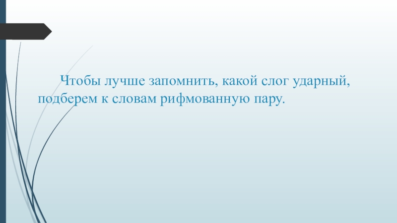 Слайд 6 Чтобы лучше запомнить, какой слог ударный, подберем к