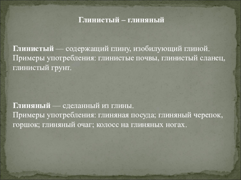 Слайд 6Глинистый – глиняный