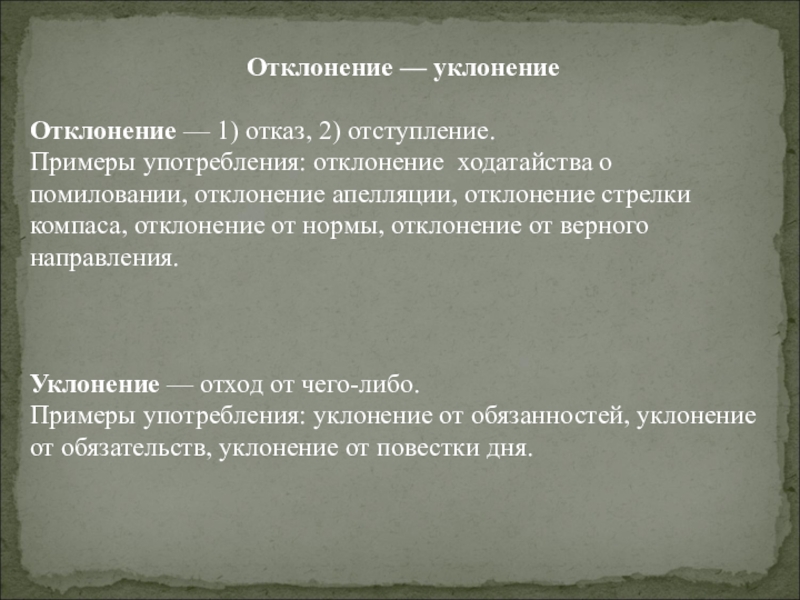 Слайд 7Отклонение — уклонение