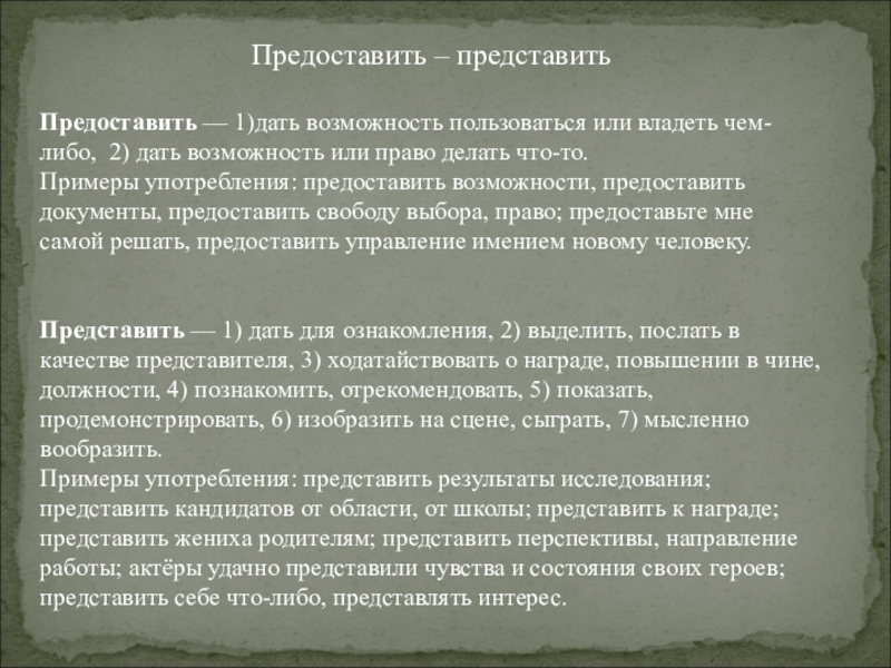 Слайд 8Предоставить – представить