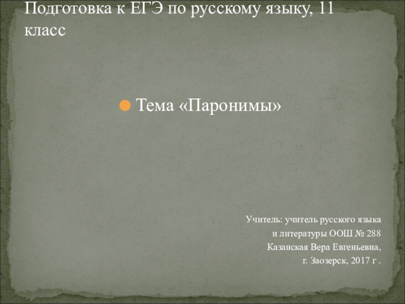 Тема «Паронимы»