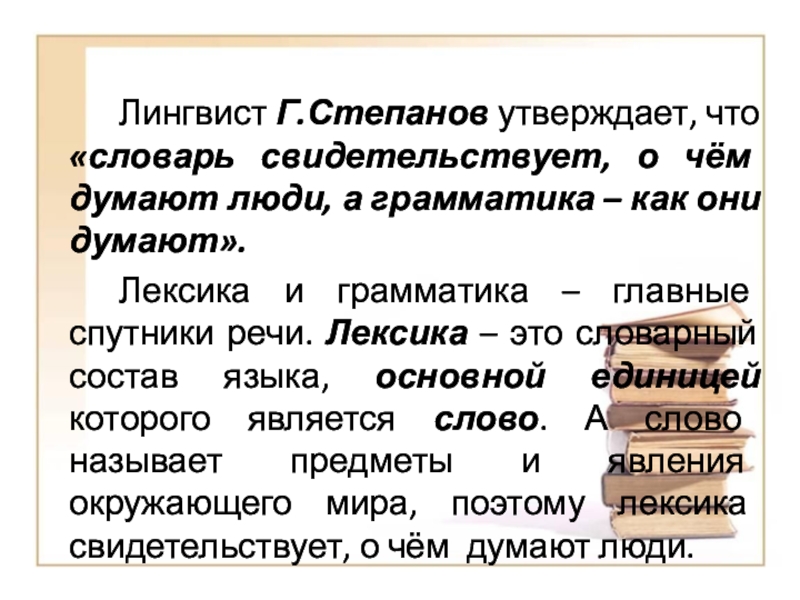 (словарный состав языка – ЛЕКСИКА, от греч. LEXIS – «слово» )