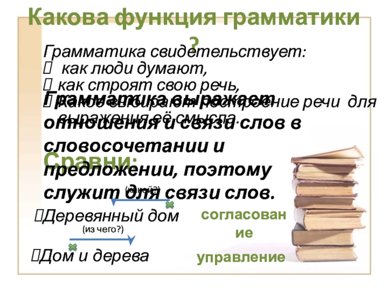Грамматика выражает отношения и связи слов в словосочетании и предложении, поэтому служит для связи слов.