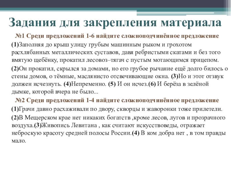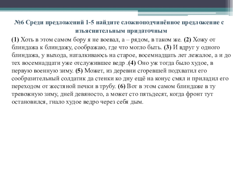 №1 Среди предложений 1-6 найдите сложноподчинённое предложение