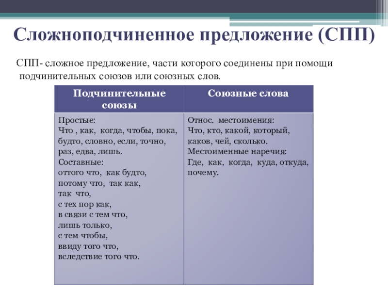 СПП- сложное предложение, части которого соединены при