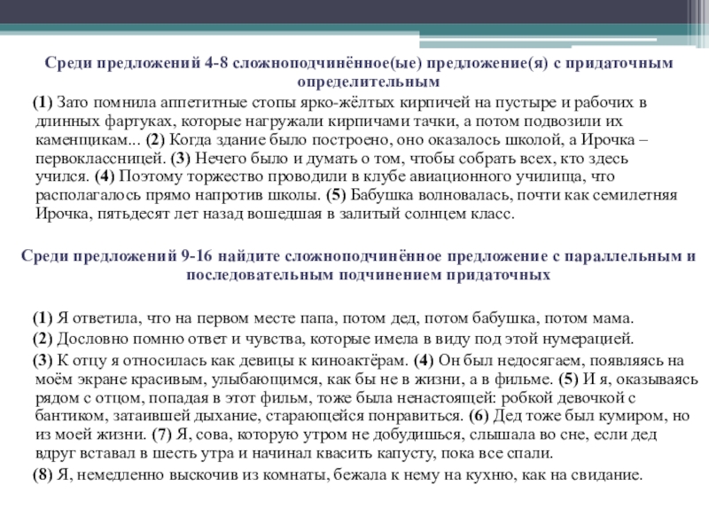 Слайд 23Среди предложений 4-8 сложноподчинённое(ые) предложение(я) с придаточным определительным