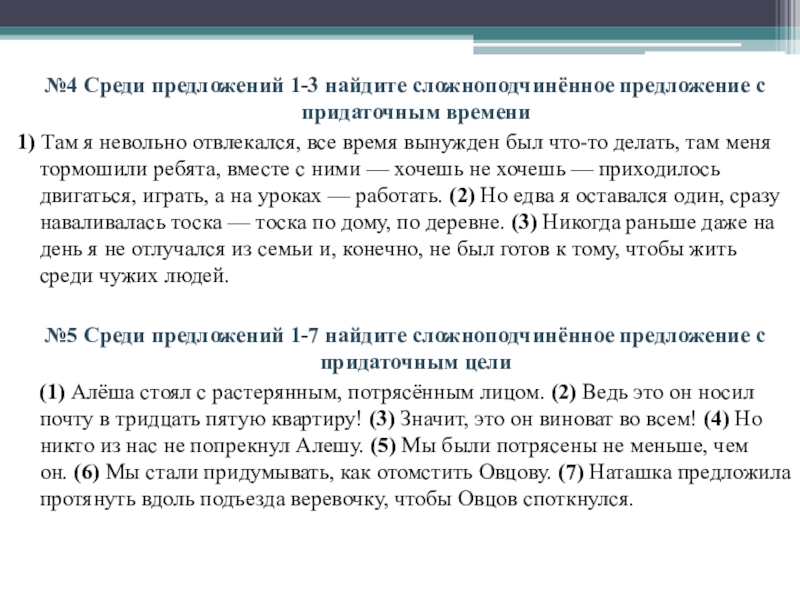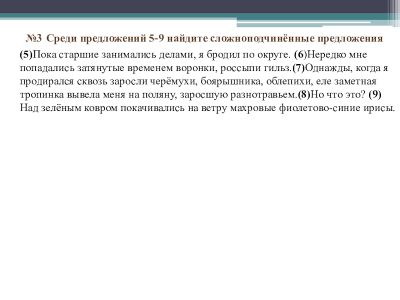 Слайд 5 №3 Среди предложений 5-9 найдите сложноподчинённые предложения