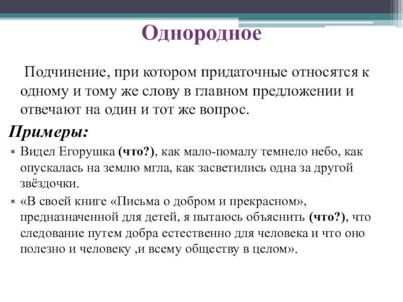 одного и того же главного предложения.