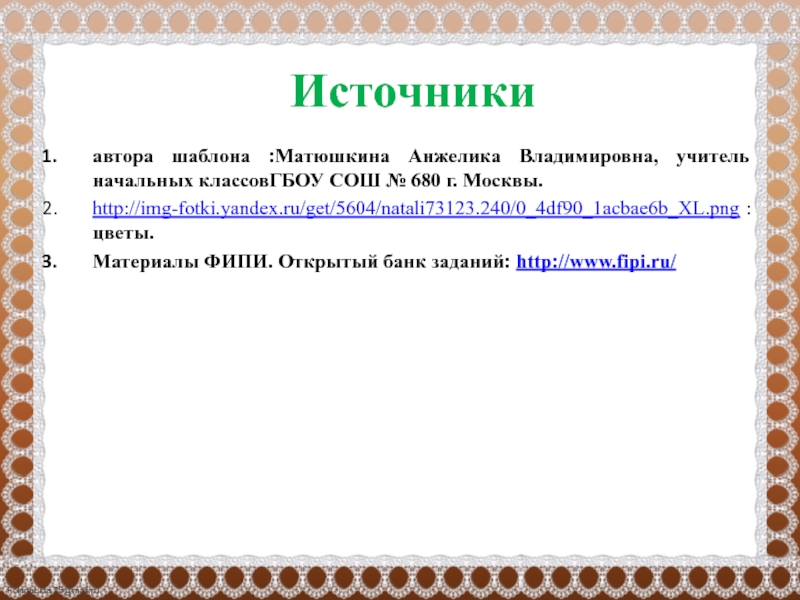 автора шаблона :Матюшкина Анжелика Владимировна, учитель начальных классовГБОУ СОШ № 680