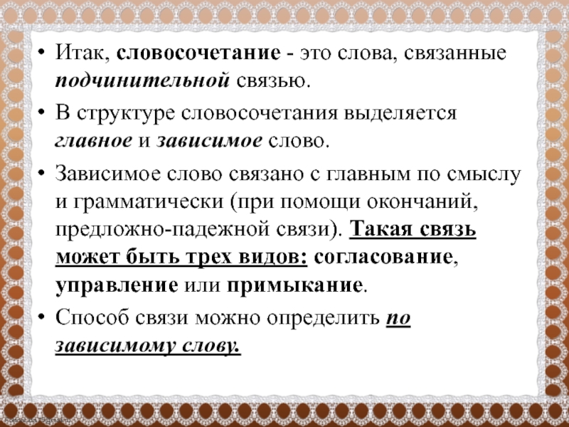 Слайд 6Итак, словосочетание - это слова, связанные подчинительной связью.