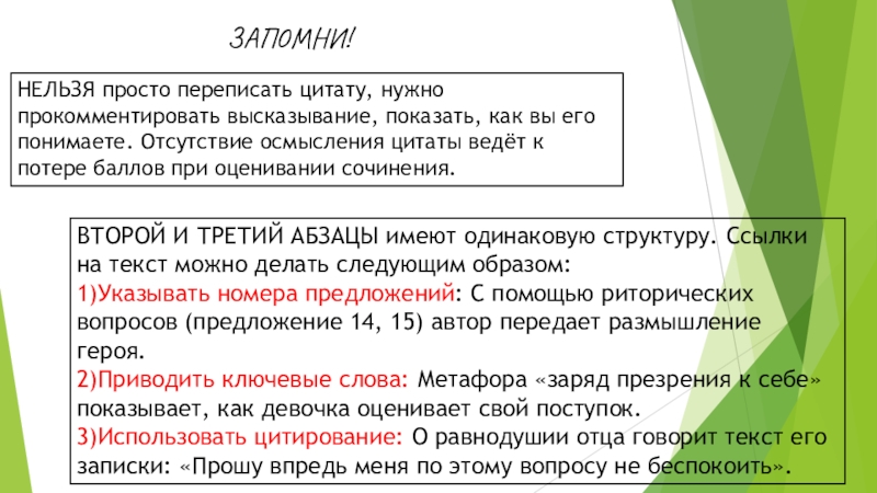 3)Использовать цитирование: О равнодушии отца говорит текст его записки: «Прошу впредь меня по этому вопросу не беспокоить».
