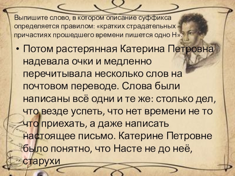 Потом растерянная Катерина Петровна надевала очки и медленно перечитывала несколько слов на почтовом переводе. Слова были написаны всё одни и те же: столько дел, что везде успеть, что нет времени не то что приехать, а даже написать настоящее письмо. Катерине Петровне было понятно, что Насте не до неё, старухи