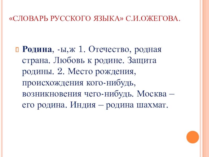 Родина, -ы,ж 1. Отечество, родная страна. Любовь