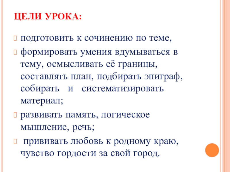 осмысливать её границы, составлять план, подбирать эпиграф, собирать и систематизировать материал;