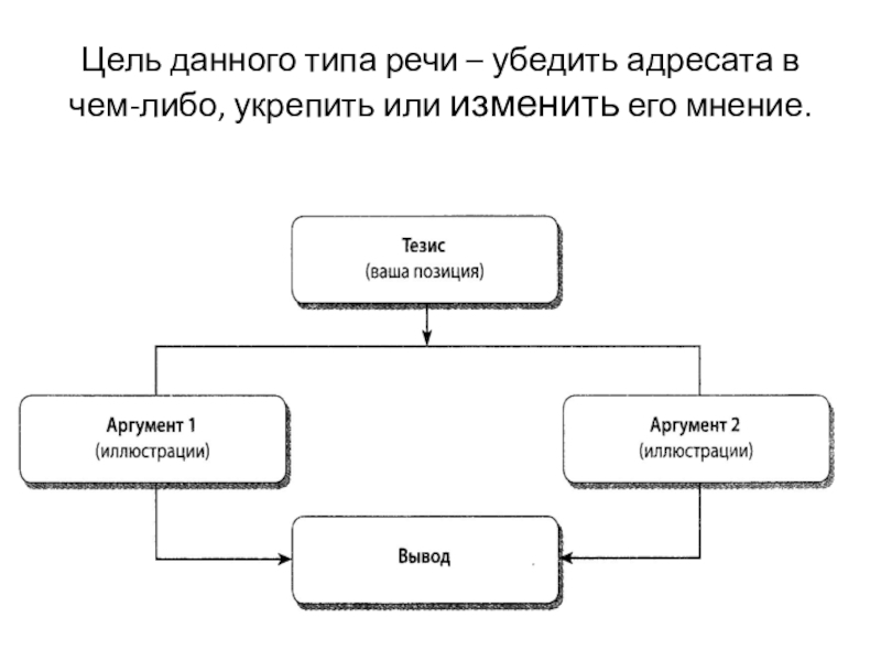 Цель данного типа речи – убедить адресата в чем-либо, укрепить или изменить его мнение.