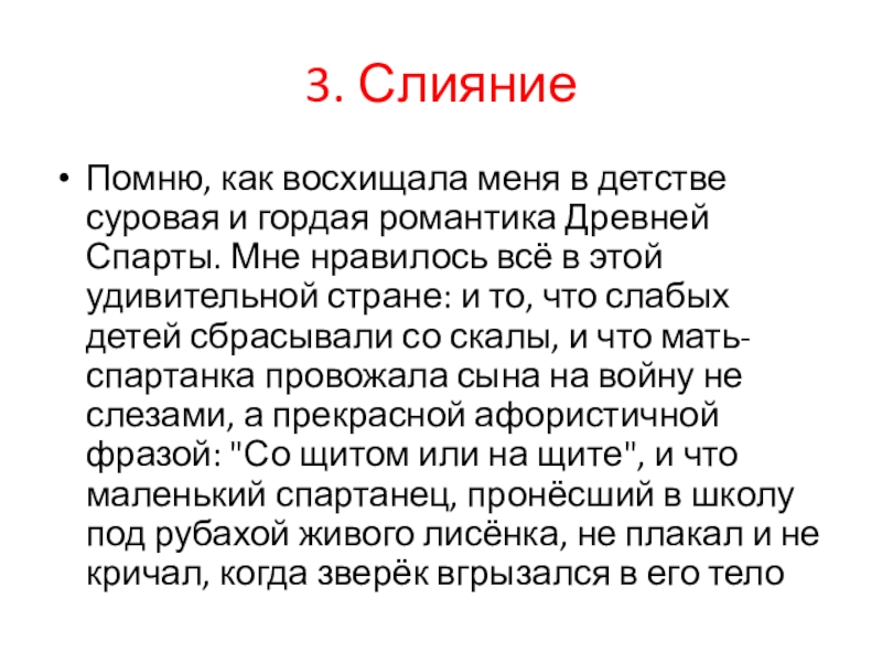 3. СлияниеПомню, как восхищала меня в детстве суровая и гордая романтика Древней Спарты. Мне нравилось всё в