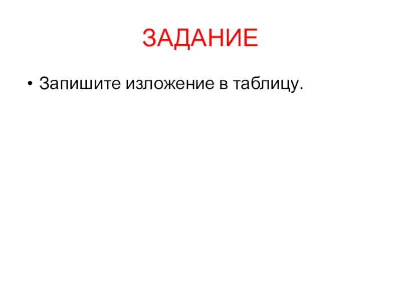 ЗАДАНИЕЗапишите изложение в таблицу.