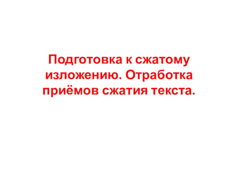Презентация, доклад на тему Подготовка к сжатому изложению. Отработка приёмов сжатия текста