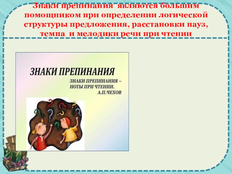 Знаки препинания являются большим помощником при определении логической структуры предложения, расстановки пауз, темпа и мелодики речи при чтении