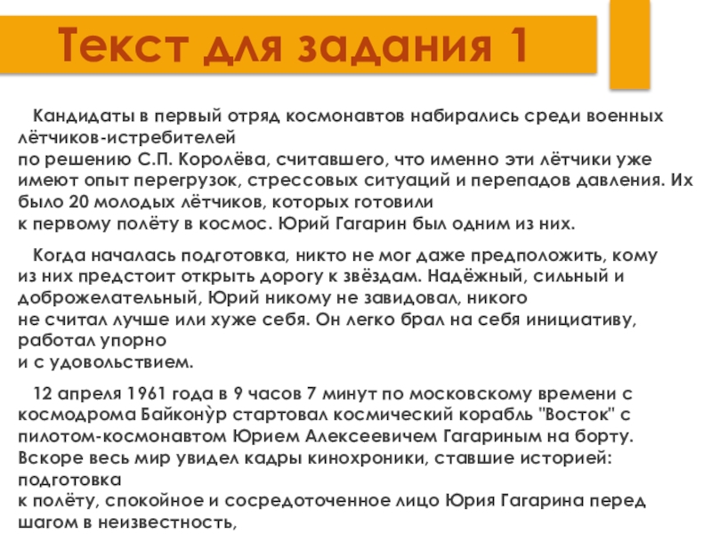 к первому полёту в космос. Юрий Гагарин был одним из них.
