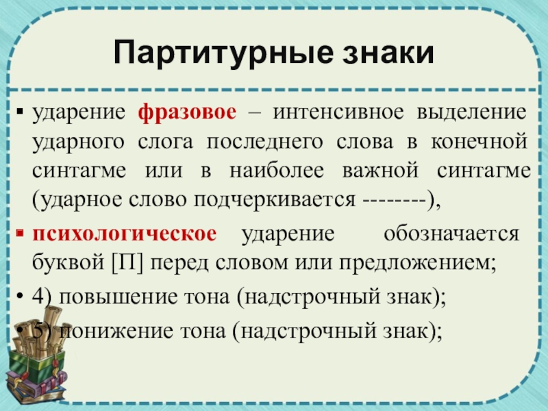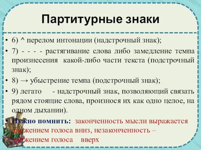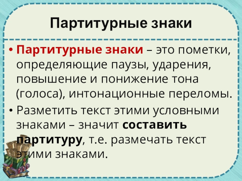 Партитурные знаки – это пометки, определяющие паузы, ударения, повышение и понижение