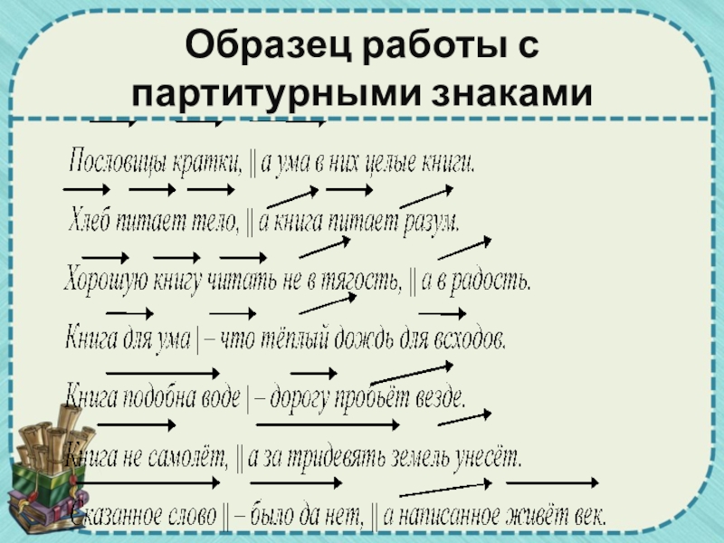 Слайд 18Образец работы с партитурными знаками