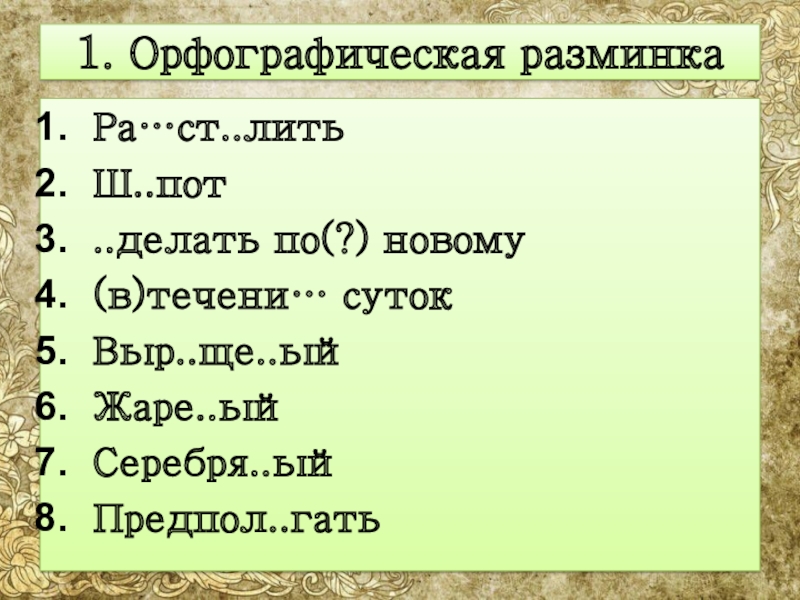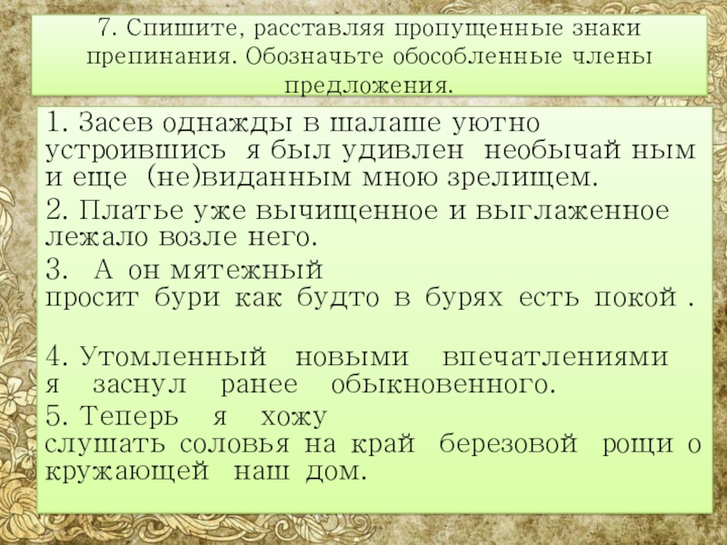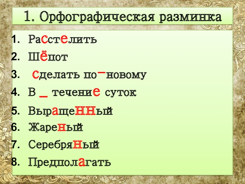4) выкраше(н,нн)ый пол, песча(н,нн)ый пляж, организова(н,нн)а шефами