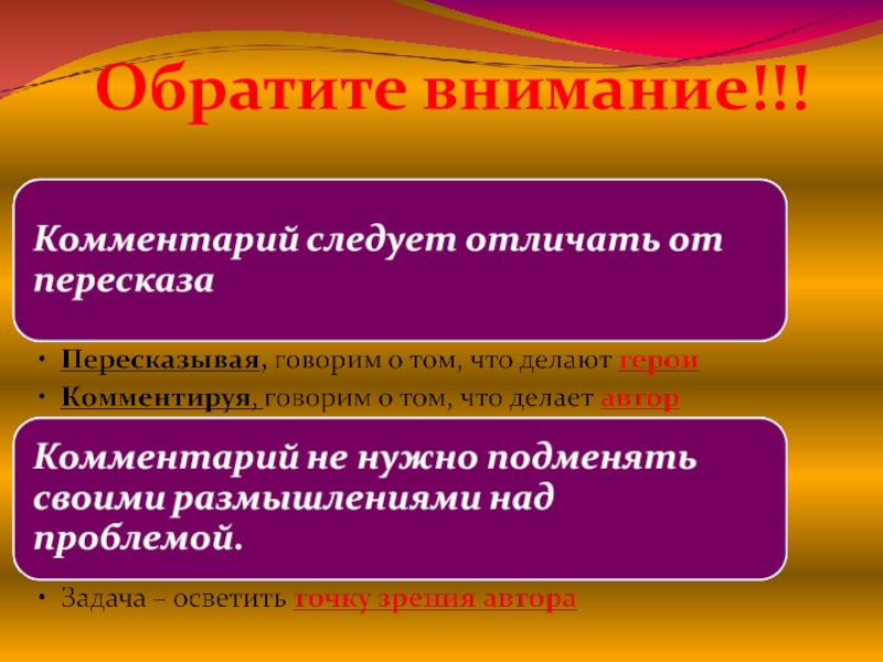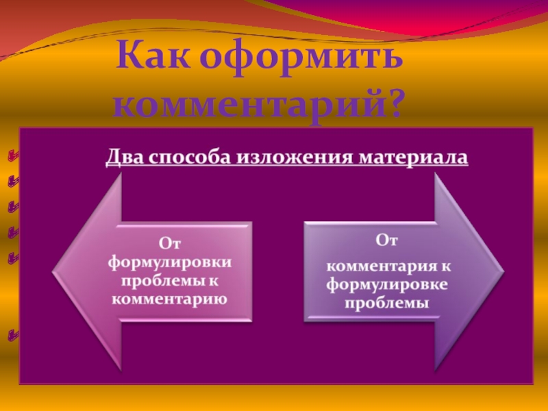 Продумайте комментарий ( следите, чтобы он логично связал формулировку проблемы и позицию автора. Подберите цитаты из текста, которые помогут подтвердить правильность вашего понимания авторского текста)
