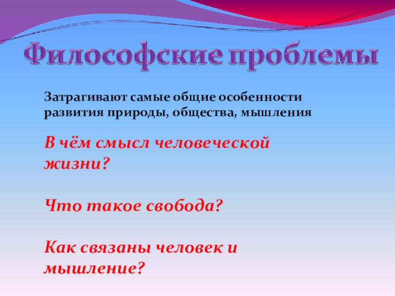 Слайд 6Затрагивают самые общие особенности развития природы, общества, мышления