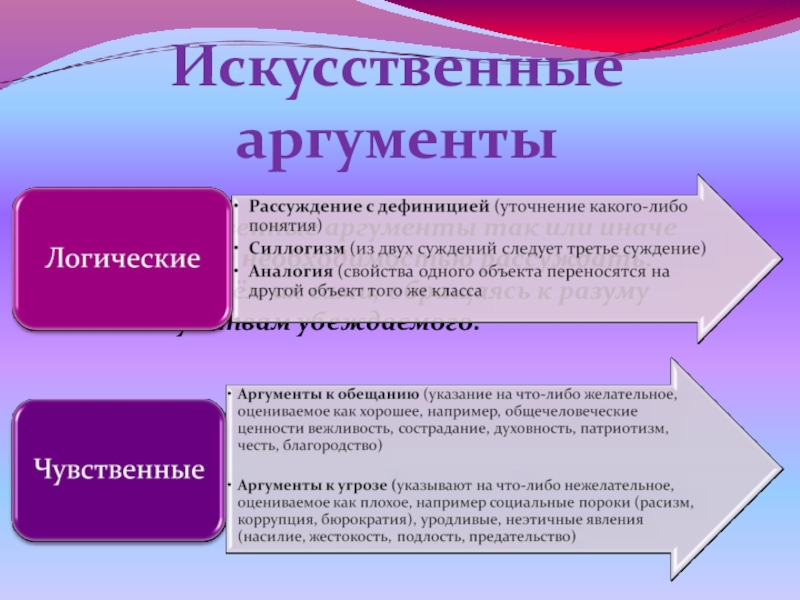 Искусственные аргументы так или иначе связаны с необходимостью рассуждать. Мы