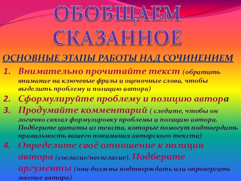 Слайд 32ОСНОВНЫЕ ЭТАПЫ РАБОТЫ НАД СОЧИНЕНИЕМ