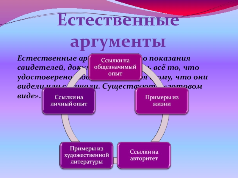 Естественные аргументы – это показания свидетелей, документы, то есть всё