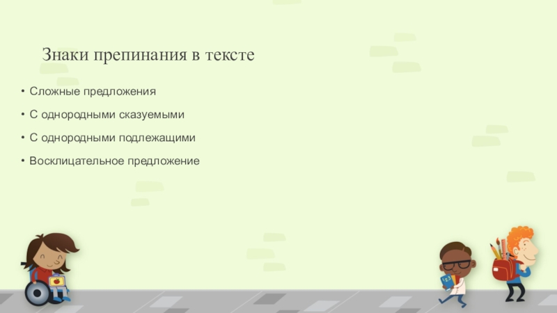 Знаки препинания в текстеСложные предложенияС однородными сказуемымиС однородными подлежащимиВосклицательное предложение