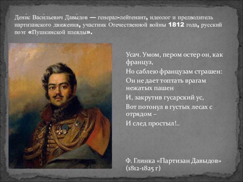 Ф. Глинка «Партизан Давыдов» (1812-1825 г)