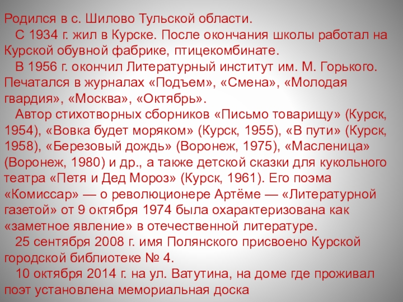 25 сентября 2008 г. имя Полянского присвоено Курской городской библиотеке № 4.