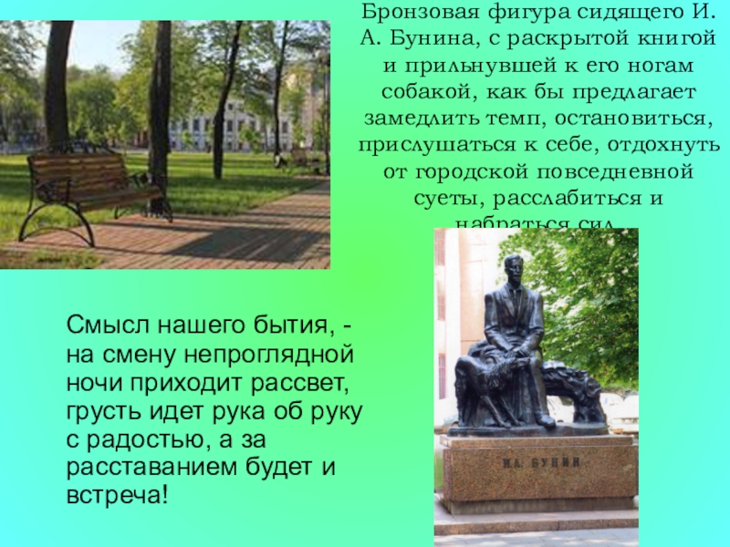 Смысл нашего бытия, - на смену непроглядной ночи приходит рассвет, грусть идет рука об руку с радостью, а за расставанием будет и встреча!