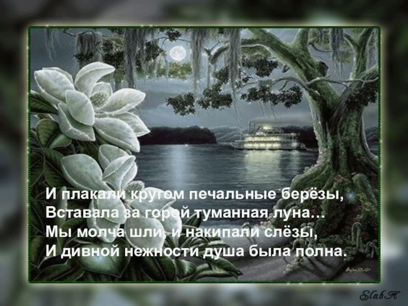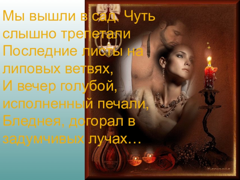 Слайд 12Мы вышли в сад. Чуть слышно трепетали