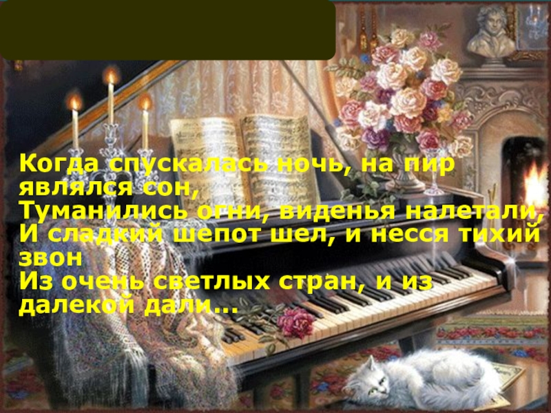 Слайд 23Когда спускалась ночь, на пир являлся сон,