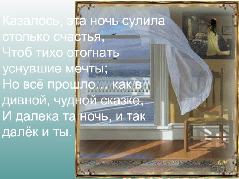 Слайд 14Казалось, эта ночь сулила столько счастья,