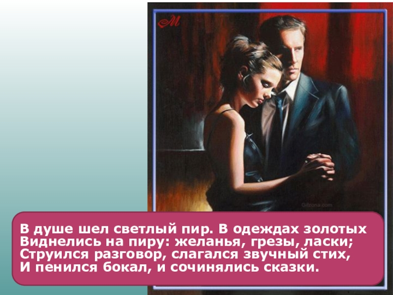 Слайд 22В душе шел светлый пир. В одеждах золотых
