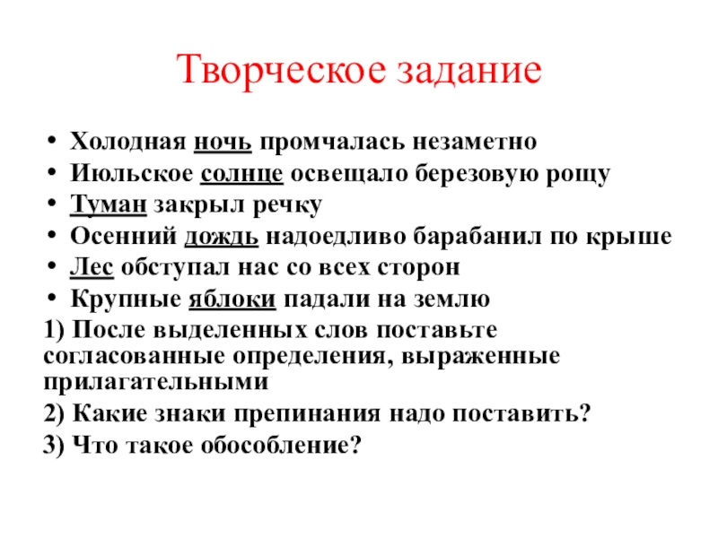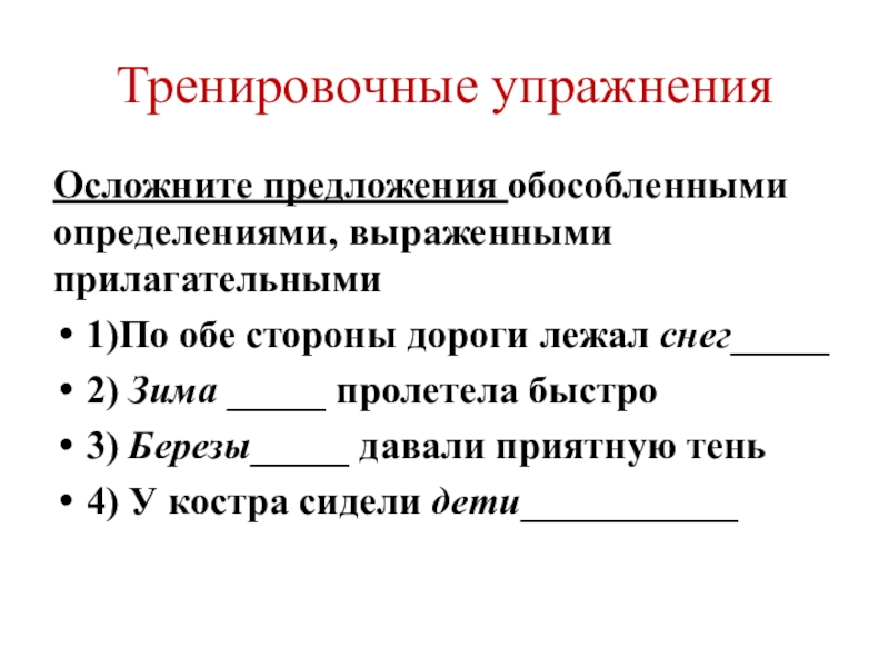 Осложните предложения обособленными определениями, выраженными прилагательными