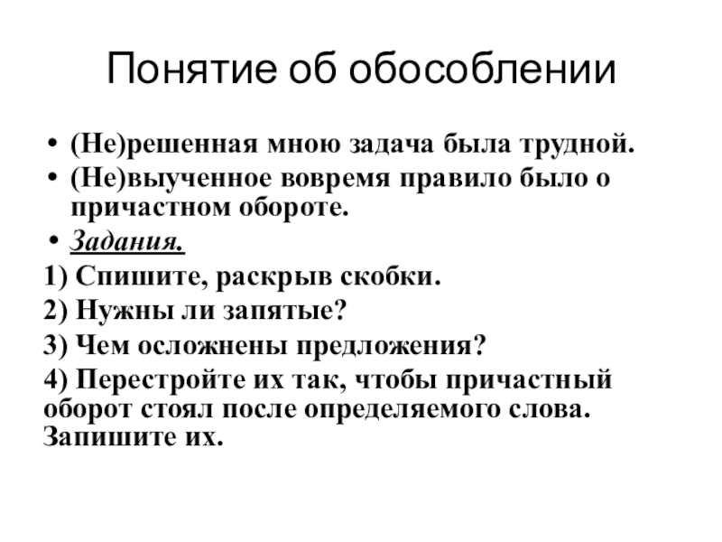 4) Перестройте их так, чтобы причастный оборот стоял после определяемого слова. Запишите их.