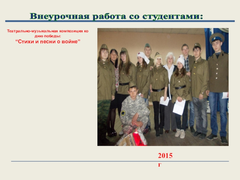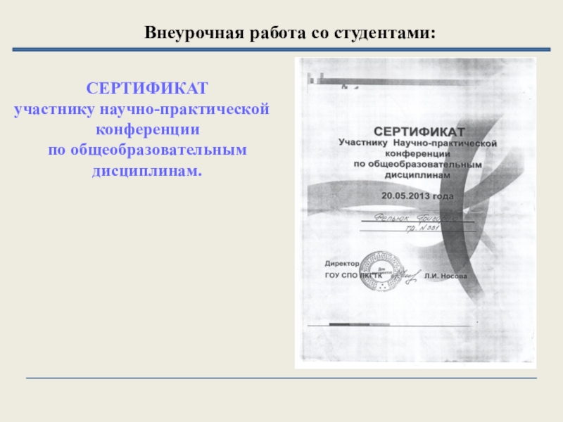 В 2012 году разработала методические рекомендации по выполнению внеаудиторной самостоятельной работы по учебным дисциплинам Русский язык и Литература;