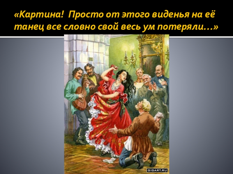 «Картина! Просто от этого виденья на её танец все словно свой весь ум потеряли…»