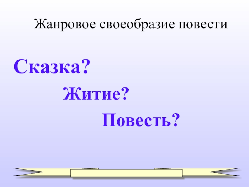 Жанровое своеобразие повести	Сказка?				Житие?						  Повесть?