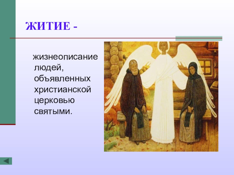 ЖИТИЕ -  жизнеописание людей, объявленных христианской церковью святыми.
