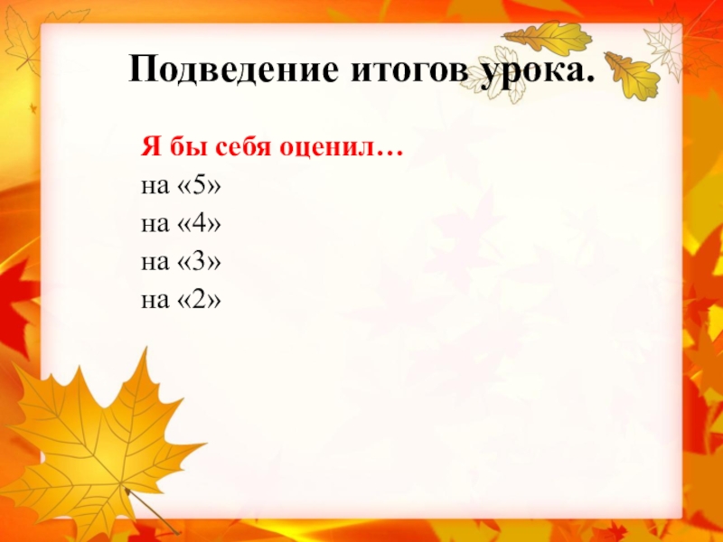 Подведение итогов урока.Я бы себя оценил…на «5»на «4»на «3»на «2»
